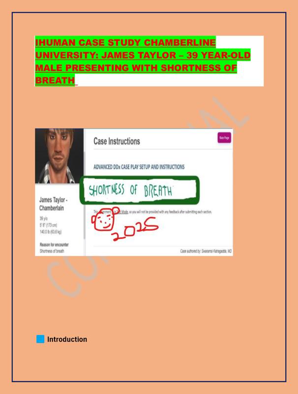 IHUMAN CASE STUDY CHAMBERLINE UNIVERSITY: JAMES TAYLOR - 39 YEAR-OLD MALE PRESENTING WITH SHORTNESS