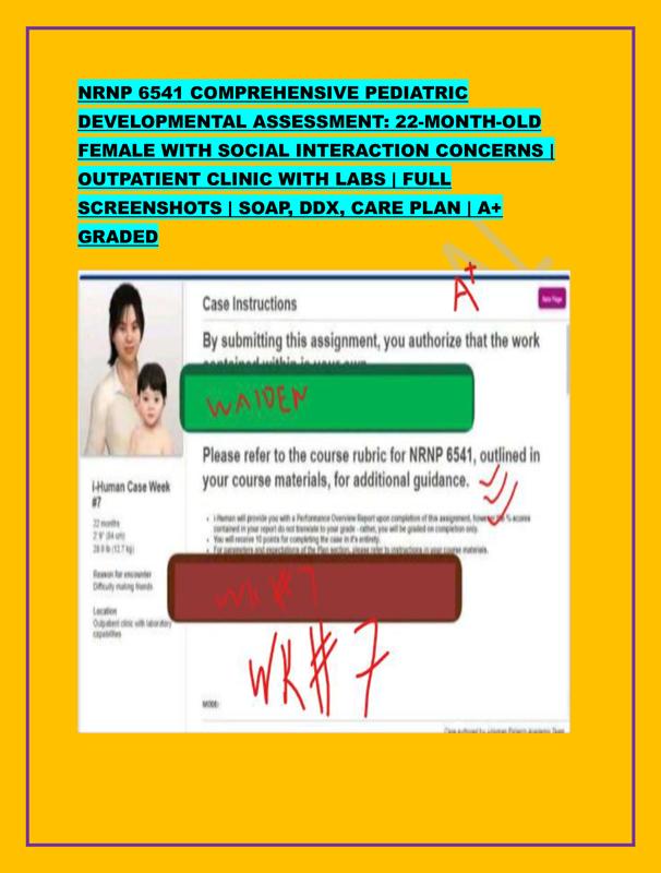 NRNP 6541 PEDIATRIC DEVELOPMENTAL ASSESSMENT 2026 - 22-MONTH-OLD FEMALE WITH SOCIAL DELAYS | FULL