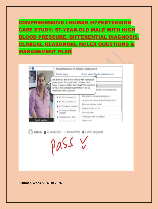 COMPREHENSIVE I-HUMAN HYPERTENSION CASE STUDY: 57-YEAR-OLD MALE W ... $41.50 Add to Cart
