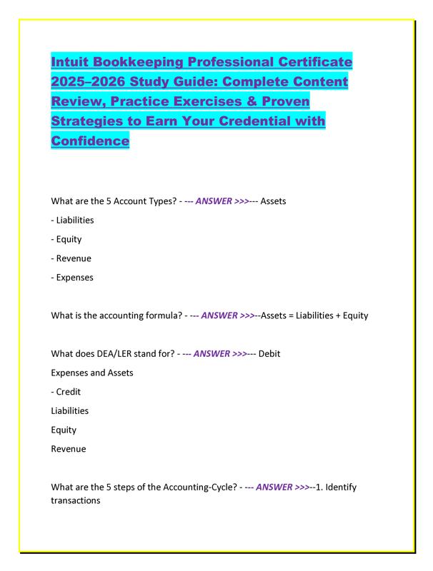 Intuit Bookkeeping Exam 2025-2026 Study Guide: Complete Review, Practice Questions & Proven Strategies to
