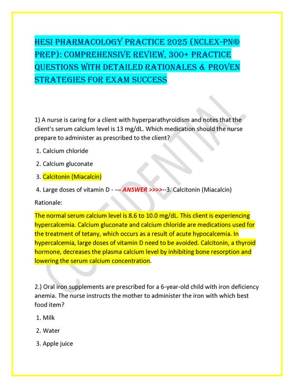 HESI PHARMACOLOGY PRACTICE 2025 (NCLEX-PN® PREP): COMPREHENSIVE ... $44.00 Add to Cart