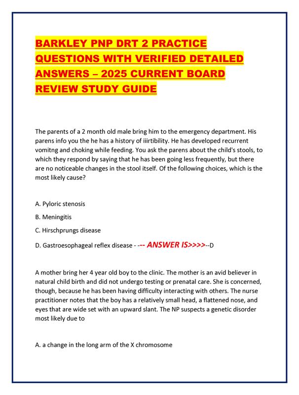 BARKLEY PNP DRT 2 PRACTICE QUESTIONS WITH VERIFIED DETAILED ANSWERS - 2025 CURRENT BOARD