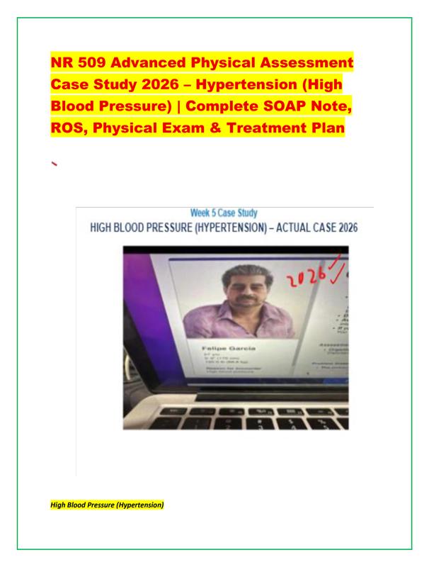 NR 509 ADVANCED PHYSICAL ASSESSMENT CASE STUDY 2026 – HYPERTENS ... $40.50 Add to Cart