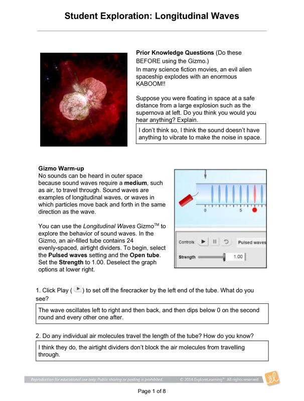 STUDENT EXPLORATION: LONGITUDINAL WAVES ANSWERS - 100% CORRECT $22.00 Add to Cart