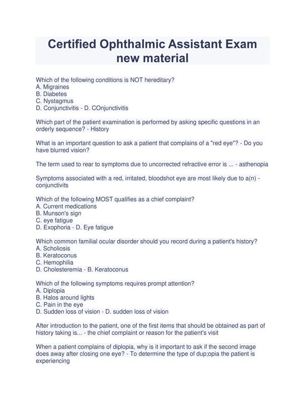CERTIFIED OPHTHALMIC ASSISTANT EXAM - LATEST (2022-2023) $23.50 Add to Cart