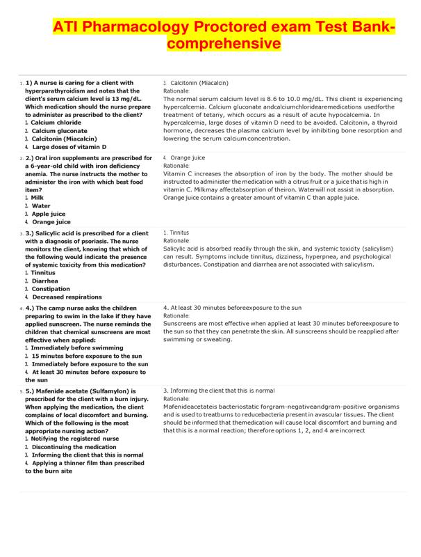 ATI PHARMACOLOGY PROCTORED EXAM TEST BANK- COMPREHENSIVE $32.00 Add to Cart