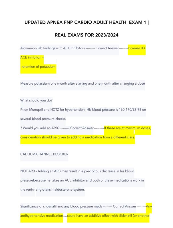 UPDATED APNEA FNP CARDIO ADULT HEALTH EXAM 1 | REAL EXAMS FOR 202 ... $19.00 Add to Cart