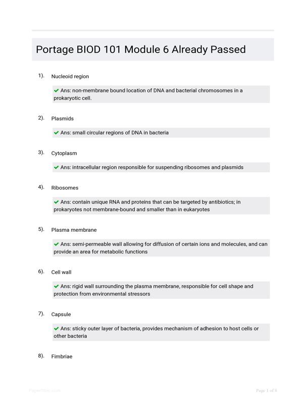 PORTAGE BIOD 101 MODULE 6 ALREADY PASSED $11.00 Add to Cart