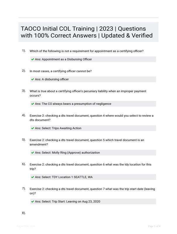 TAOCO INITIAL COL TRAINING | 2023 | QUESTIONS WITH 100%... $20.50 Add to Cart