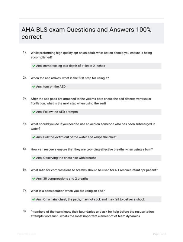 BLS EXAM REVIEW WITH 100% CORRECT VERIFIED ANSWERS $9.50 Add to Cart