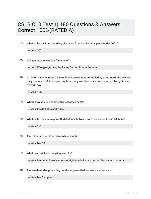 CSLB C10 TEST 1| 180 QUESTIONS & ANSWERS CORRECT 100%(RATED A) $24.00 Add to Cart