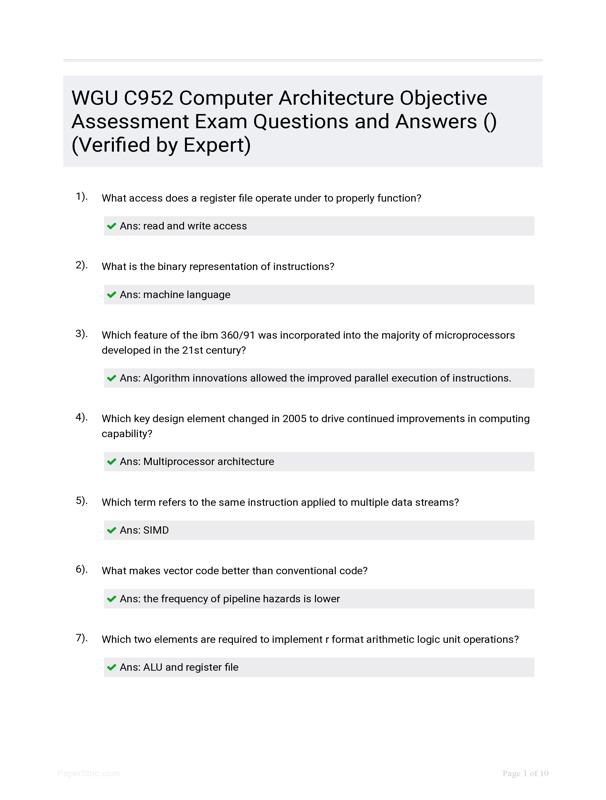 WGU C952 COMPUTER ARCHITECTURE OBJECTIVE ASSESSMENT EXAM... $22.00 Add to Cart