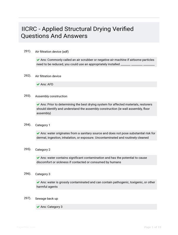 IICRC - APPLIED STRUCTURAL DRYING VERIFIED QUESTIONS AND ANSWERS $14.00 Add to Cart