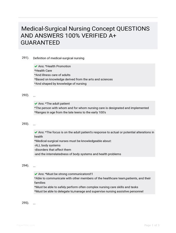 MEDICAL-SURGICAL NURSING CONCEPT QUESTIONS AND ANSWERS 100%... $18.50 Add to Cart