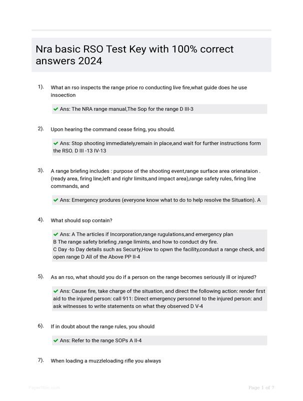 NRA BASIC RSO TEST KEY WITH 100% CORRECT ANSWERS 2024 $16.50 Add to Cart