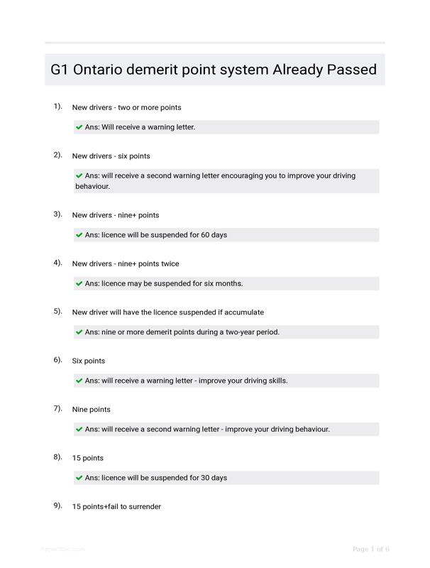 G1 ONTARIO DEMERIT POINT SYSTEM ALREADY PASSED $9.50 Add to Cart