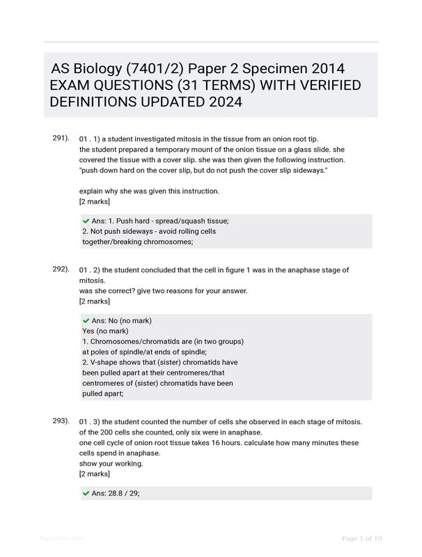 AS BIOLOGY (7401/2) PAPER 2 SPECIMEN 2014 EXAM QUESTIONS (31... $22.00 Add to Cart