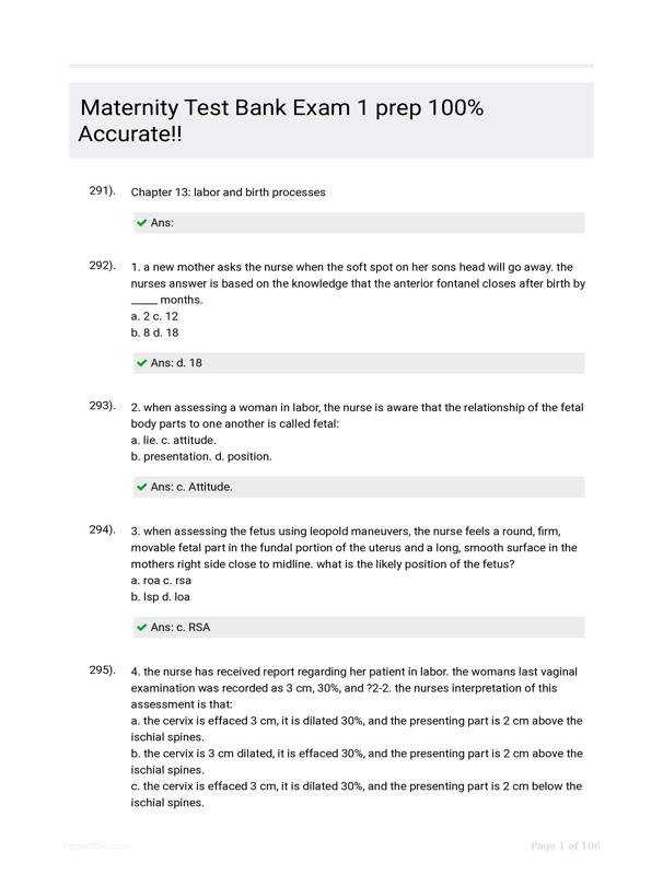 MATERNITY TEST BANK EXAM 1 PREP 100% ACCURATE!! $27.00 Add to Cart