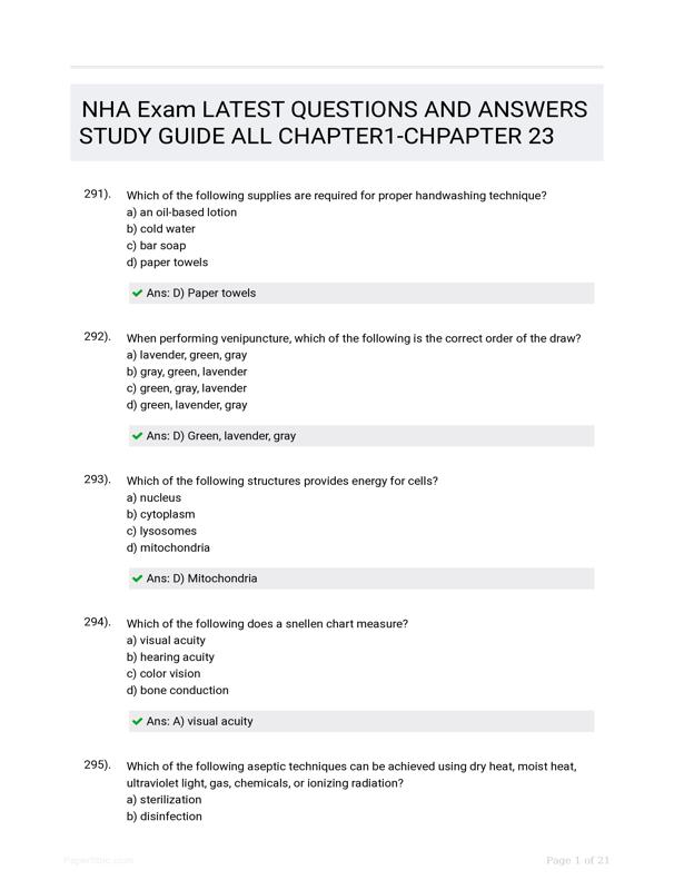 NHA EXAM LATEST QUESTIONS AND ANSWERS STUDY GUIDE ALL ... $26.75 Add to Cart
