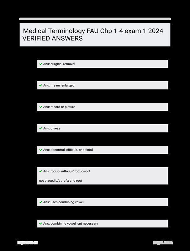 MEDICAL TERMINOLOGY FAU CHP 1-4 EXAM 1 2024 VERIFIED ANSWERS $14.00 Add to Cart