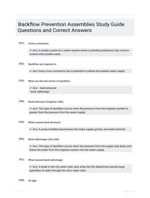 BACKFLOW PREVENTION ASSEMBLIES STUDY GUIDE QUESTIONS AND... $20.50 Add to Cart