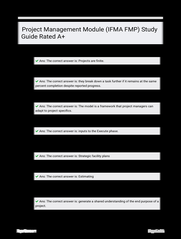PROJECT MANAGEMENT MODULE (IFMA FMP) STUDY GUIDE RATED A+ $9.50 Add to Cart