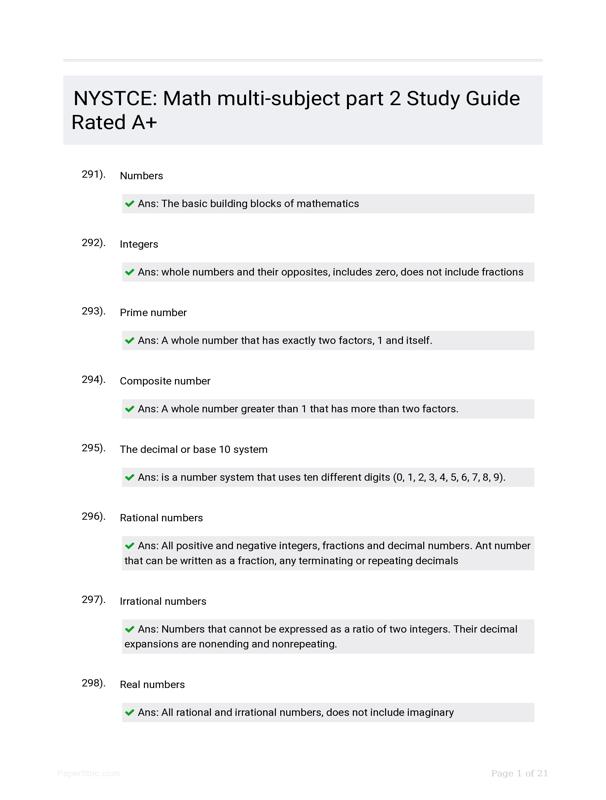 NYSTCE: MATH MULTI-SUBJECT PART 2 STUDY GUIDE RATED A+ $26.75 Add to Cart