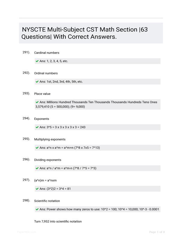 NYSCTE MULTI-SUBJECT CST MATH SECTION |63 QUESTIONS| WITH... $22.00 Add to Cart
