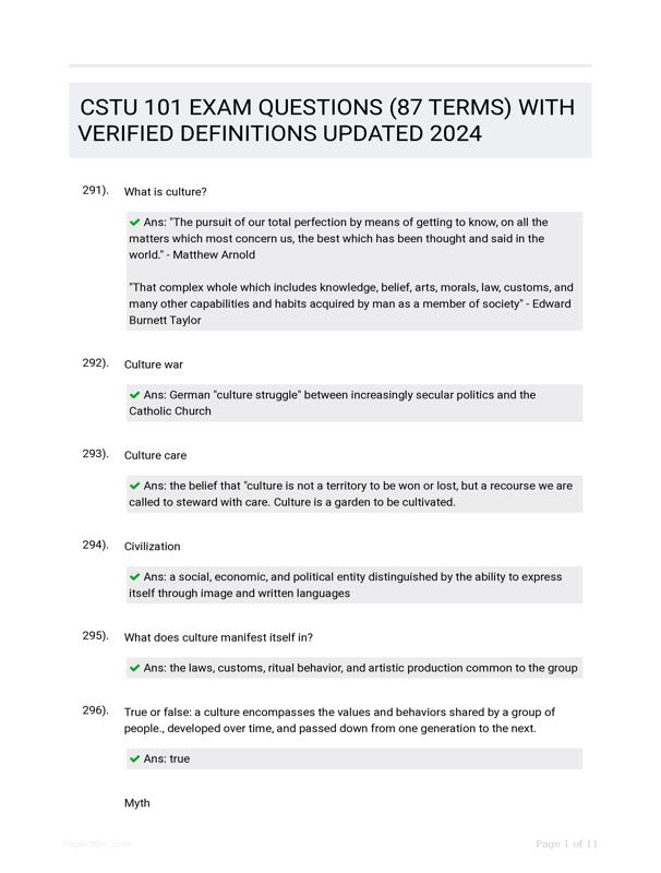 CSTU 101 EXAM QUESTIONS (87 TERMS) WITH VERIFIED DEFINITIONS... $23.50 Add to Cart