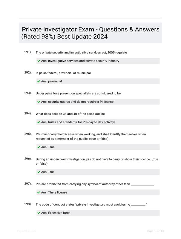 PRIVATE INVESTIGATOR EXAM - QUESTIONS & ANSWERS (RATED 98%)... $24.00 Add to Cart