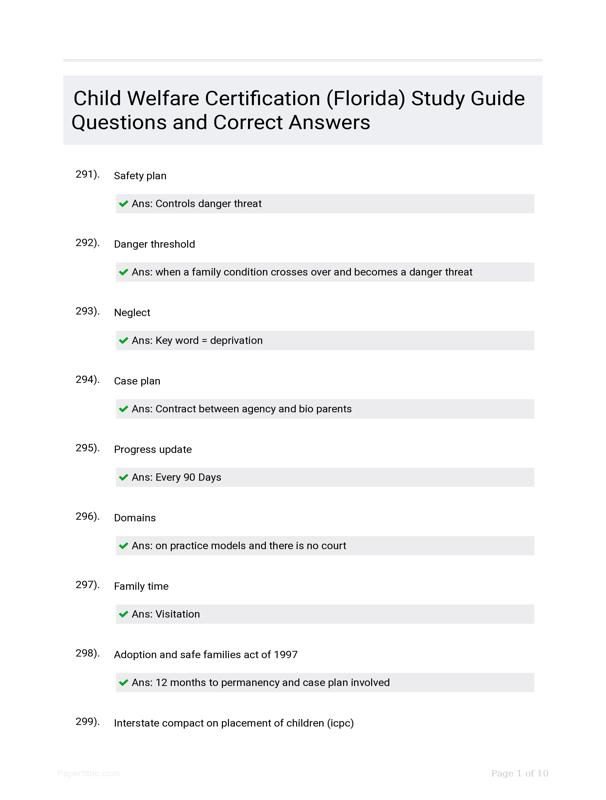 CHILD WELFARE CERTIFICATION (FLORIDA) STUDY GUIDE QUESTIONS... $22.00 Add to Cart