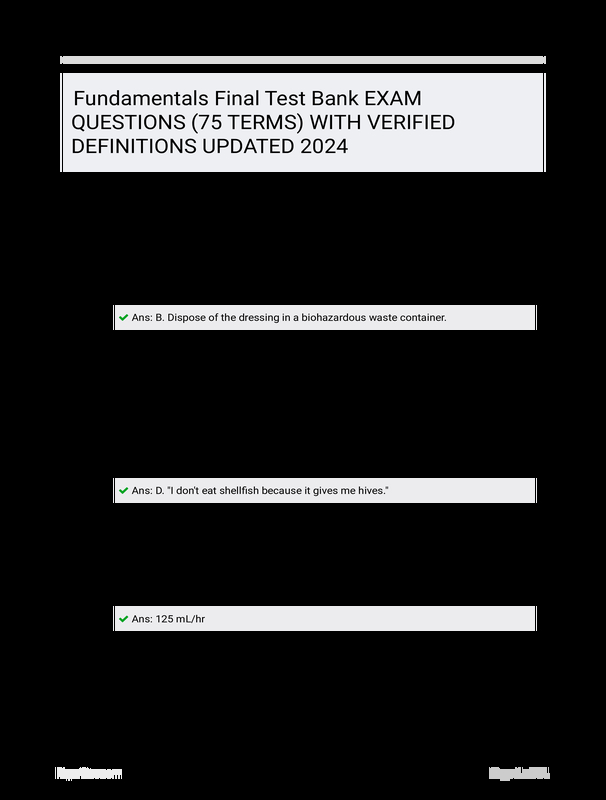 FUNDAMENTALS FINAL TEST BANK EXAM QUESTIONS (75 TERMS) WITH... $26.75 Add to Cart