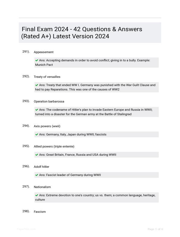 FINAL EXAM 2024 - 42 QUESTIONS & ANSWERS (RATED A+) LATEST... $20.50 Add to Cart