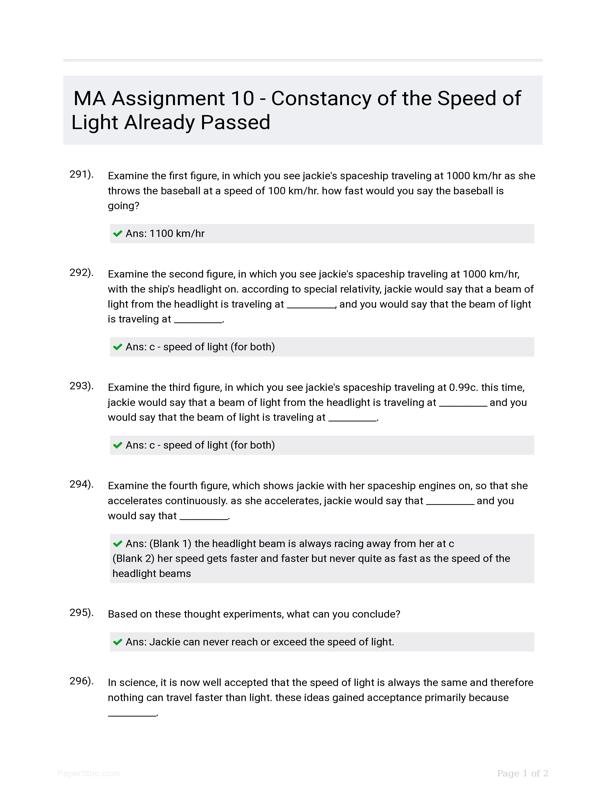 MA ASSIGNMENT 10 - CONSTANCY OF THE SPEED OF LIGHT ALREADY PASSED $18.50 Add to Cart