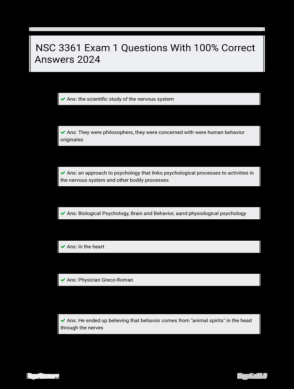 NSC 3361 EXAM 1 QUESTIONS WITH 100% CORRECT ANSWERS 2024 $26.75 Add to Cart