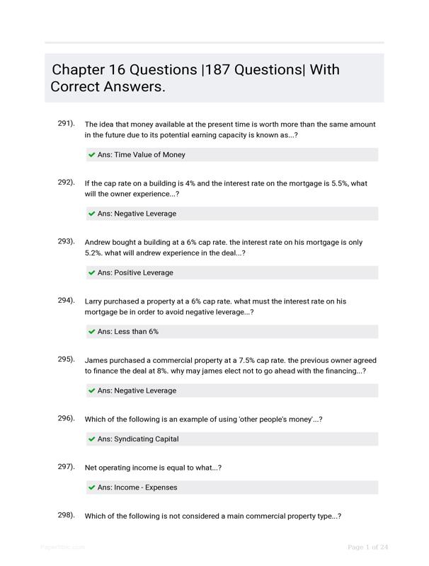 CHAPTER 16 QUESTIONS |187 QUESTIONS| WITH CORRECT ANSWERS. $14.50 Add to Cart