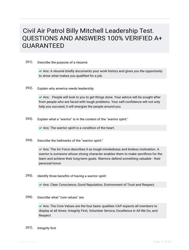 CIVIL AIR PATROL BILLY MITCHELL LEADERSHIP TEST. QUESTIONS... $32.00 Add to Cart