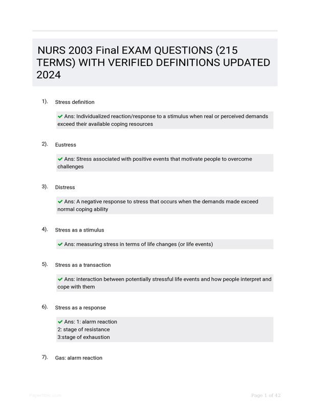NURS 2003 FINAL EXAM QUESTIONS (215 TERMS) WITH VERIFIED DEFINITI ... $16.75 Add to Cart