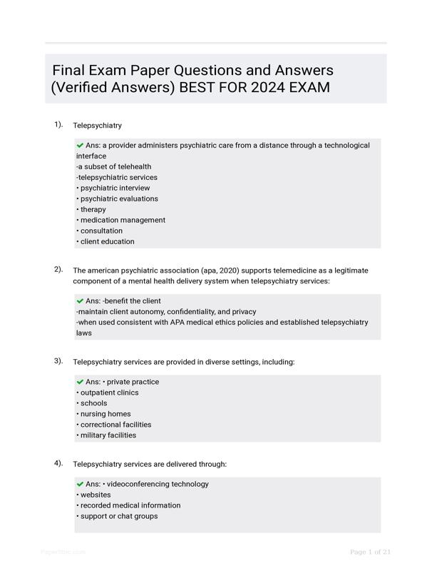 FINAL EXAM PAPER QUESTIONS AND ANSWERS (VERIFIED ANSWERS)... $26.75 Add to Cart