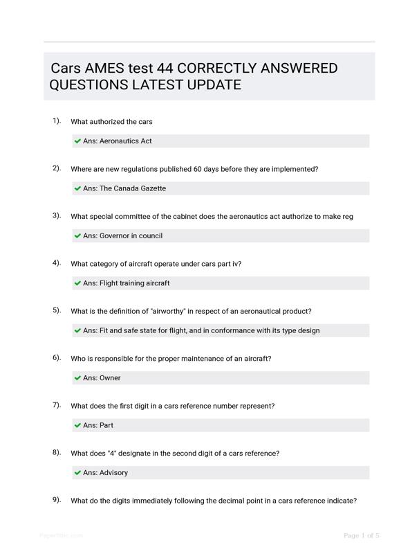 CARS AMES TEST 44 CORRECTLY ANSWERED QUESTIONS LATEST UPDATE $9.50 Add to Cart