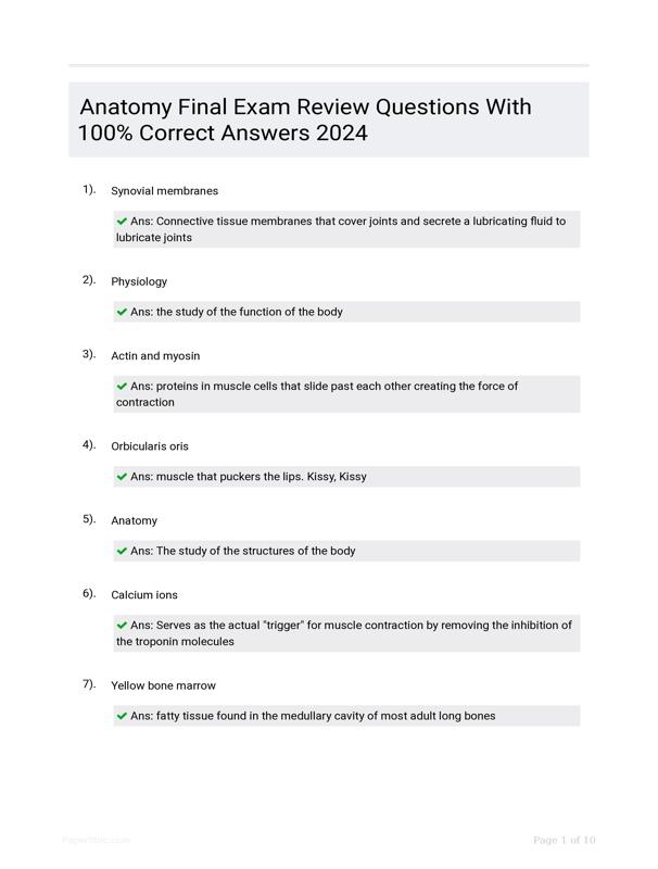 ANATOMY FINAL EXAM REVIEW QUESTIONS WITH 100% CORRECT ANSWERS 2024 $22.00 Add to Cart
