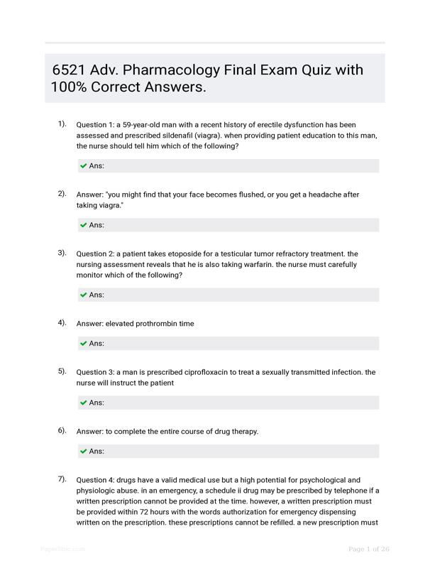 6521 ADV. PHARMACOLOGY FINAL EXAM QUIZ WITH 100% CORRECT ANSWERS. $14.50 Add to Cart