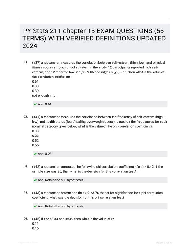 PY STATS 211 CHAPTER 15 EXAM QUESTIONS (56 TERMS) WITH... $22.00 Add to Cart