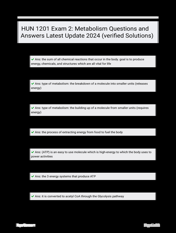 HUN 1201 EXAM 2: METABOLISM QUESTIONS AND ANSWERS LATEST... $20.50 Add to Cart