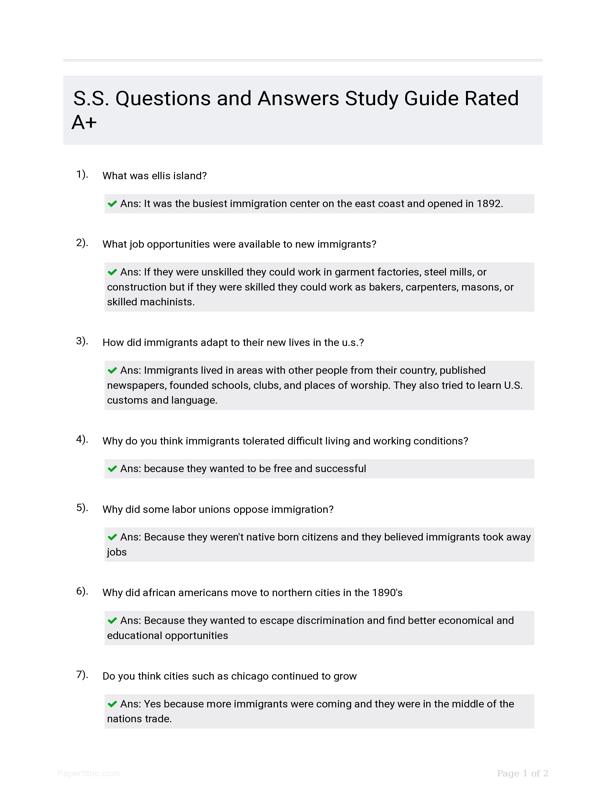S.S. QUESTIONS AND ANSWERS STUDY GUIDE RATED A+ $18.50 Add to Cart