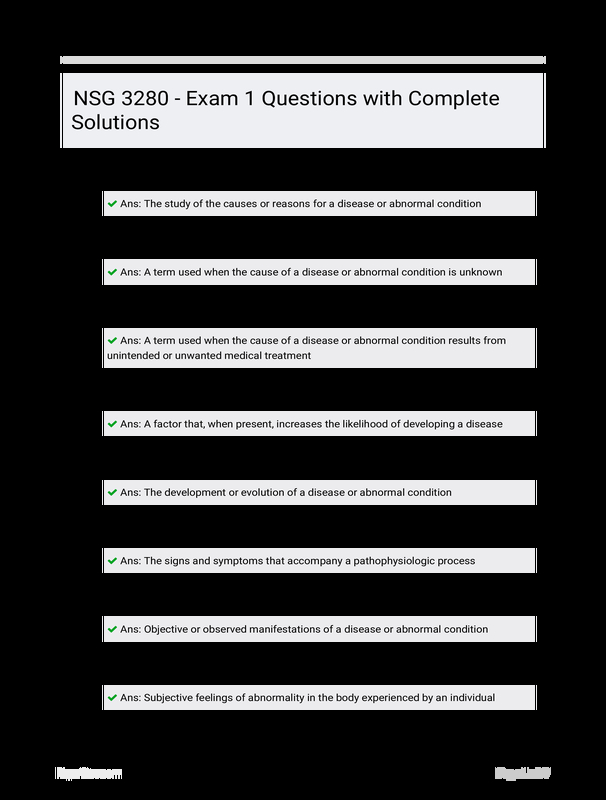 NSG 3280 - EXAM 1 QUESTIONS WITH COMPLETE SOLUTIONS $22.00 Add to Cart