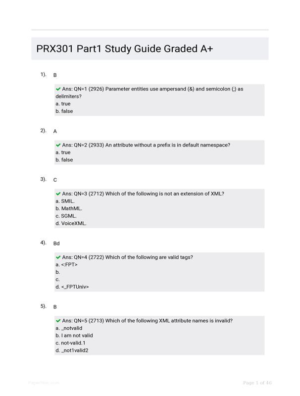 PRX301 PART1 STUDY GUIDE GRADED A+ $28.50 Add to Cart