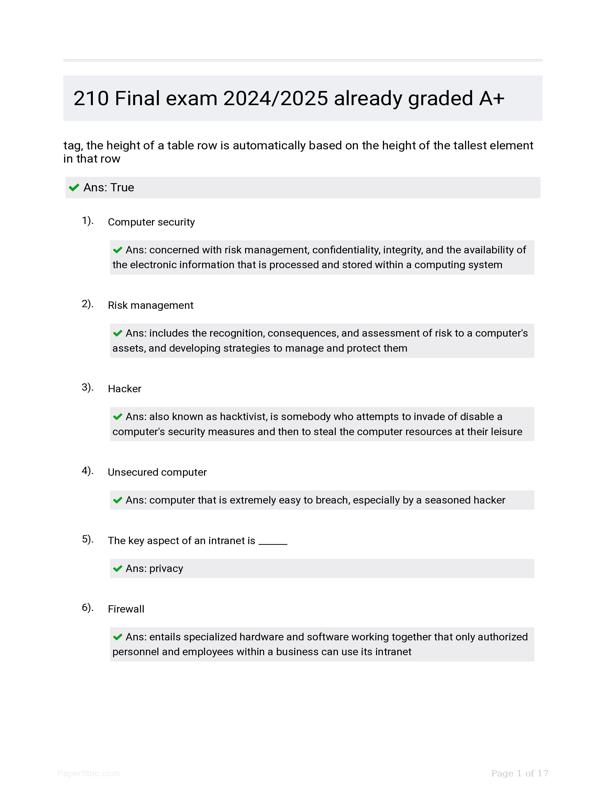 210 FINAL EXAM 2024/2025 ALREADY GRADED A+ $26.75 Add to Cart