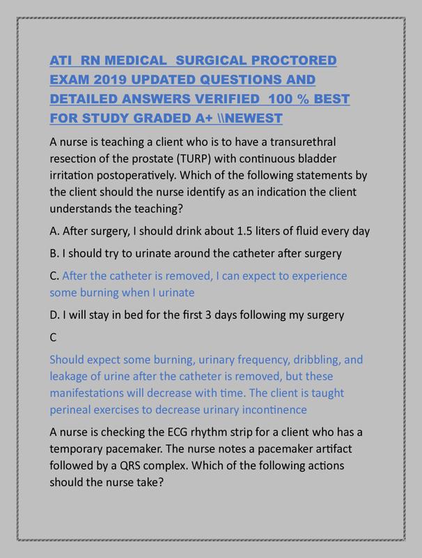 ATI RN MEDICAL SURGICAL PROCTORED EXAM 2019 UPDATED... $16.00 Add to Cart