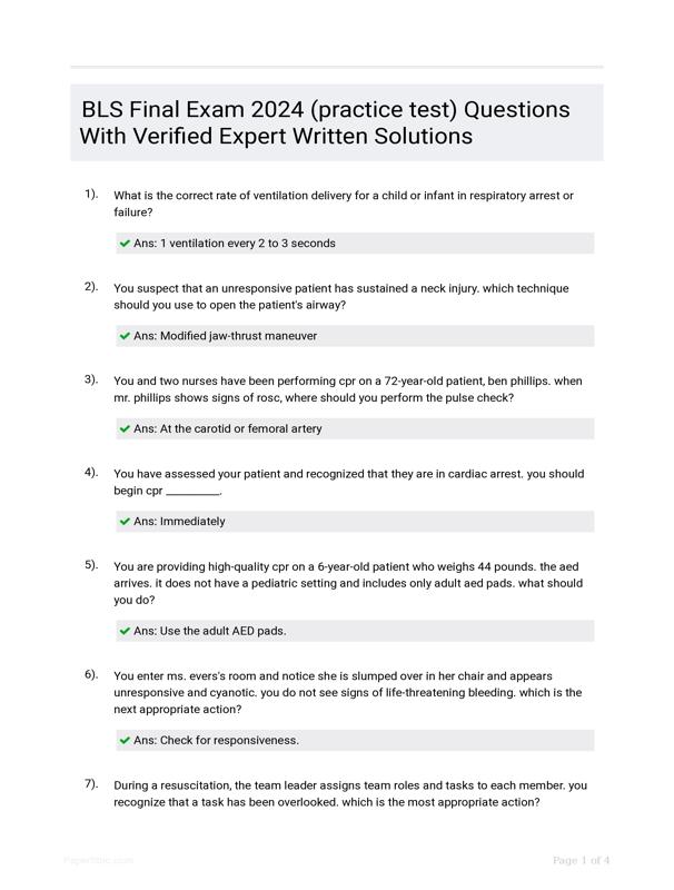 BLS FINAL EXAM 2024 (PRACTICE TEST) QUESTIONS WITH VERIFIED... $20.50 Add to Cart